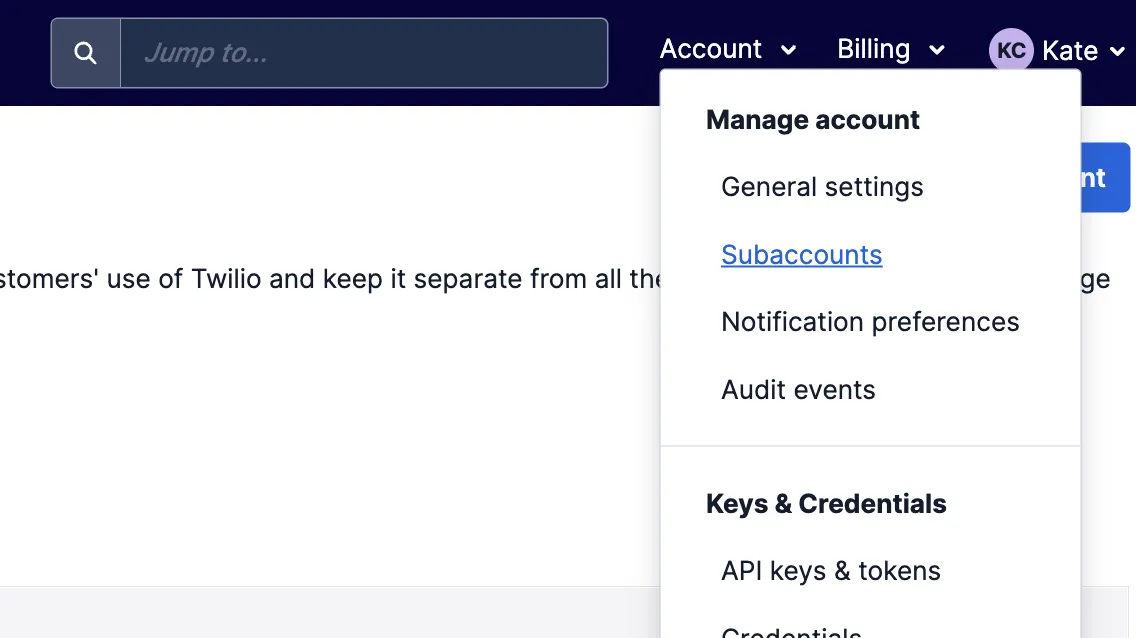 1. Auschecken Zahlen von einem LC-Telefon-Subkonto auf das eigene Twilio-Konto des Kunden übertragen.