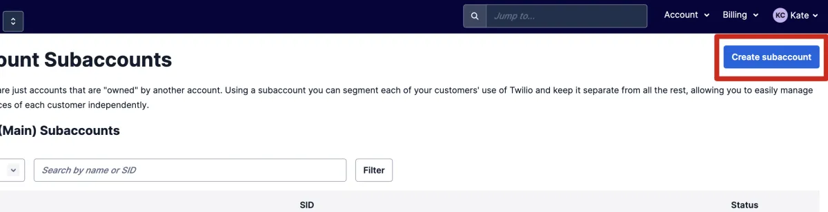 Lassen Sie uns wissen, damit wir das Unter-Konto auf das neue Twilio-Konto mit den hier vorliegenden Informationen übertragen können: