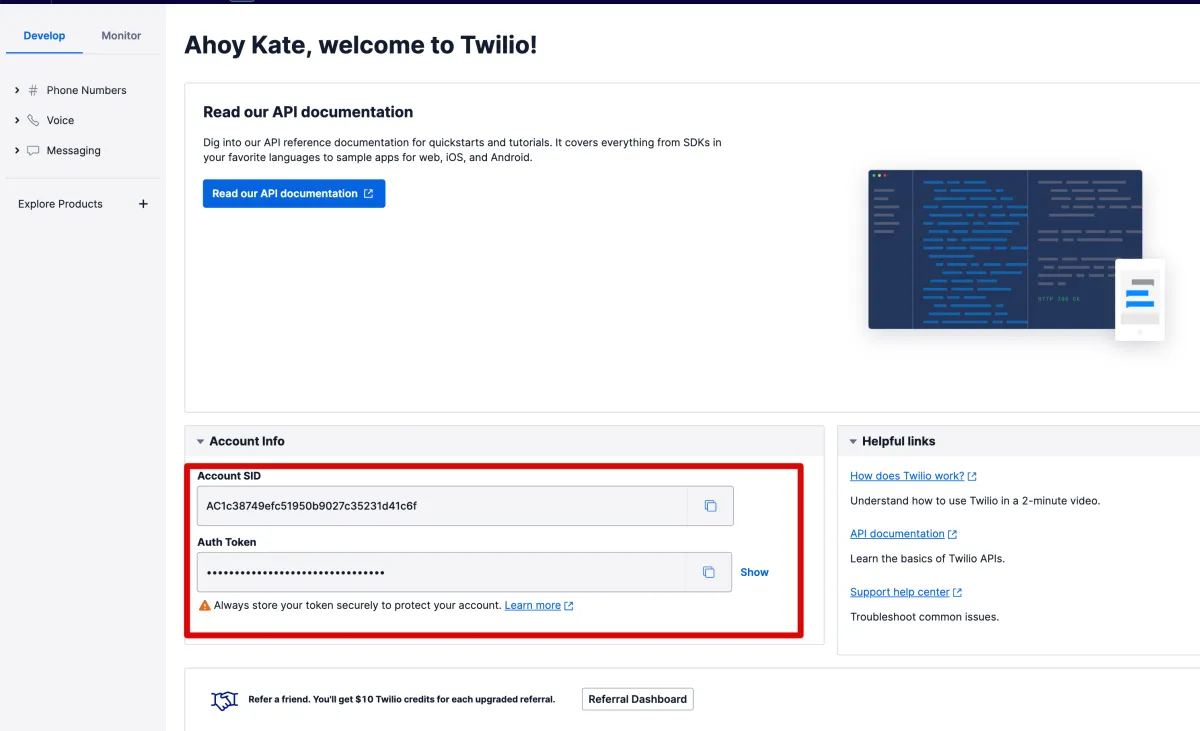 Wie man die Twilio-Konten-SID und den Authentifizierungs-Token erhält:
