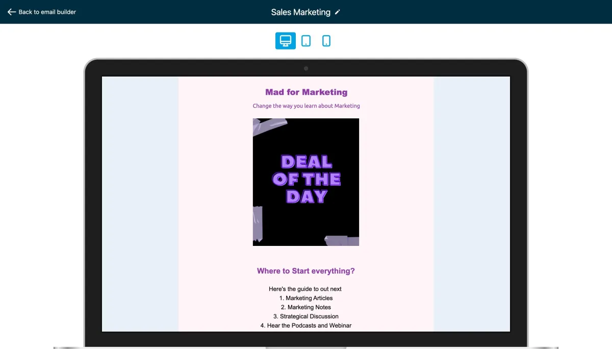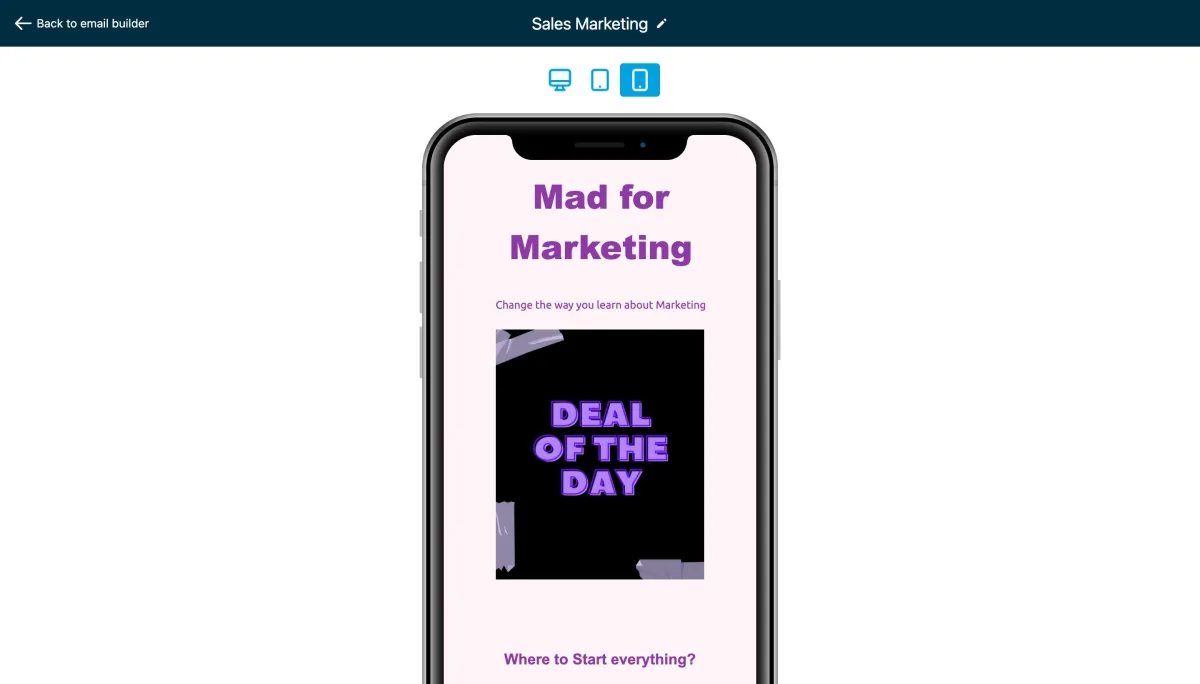 Vorschauen und testen Sie Ihre E-Mail-Kampagne auf einem Mobilgerät, um die Änderungen zu sehen.