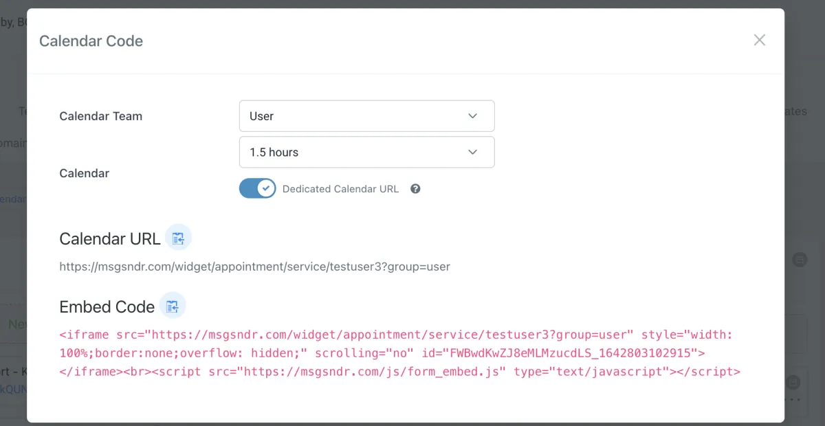 https://msgsndr.com/widget/appointment/service/testuser3?group=user" style="width: 100%;border:none;overflow: hidden;" scrolling="no" id="FWBwdKwZJ8eMLMzucdLS_1642802907092"></iframe><br><script src="https://msgsndr.com/js/form_embed.js" type="text/javascript"></script>