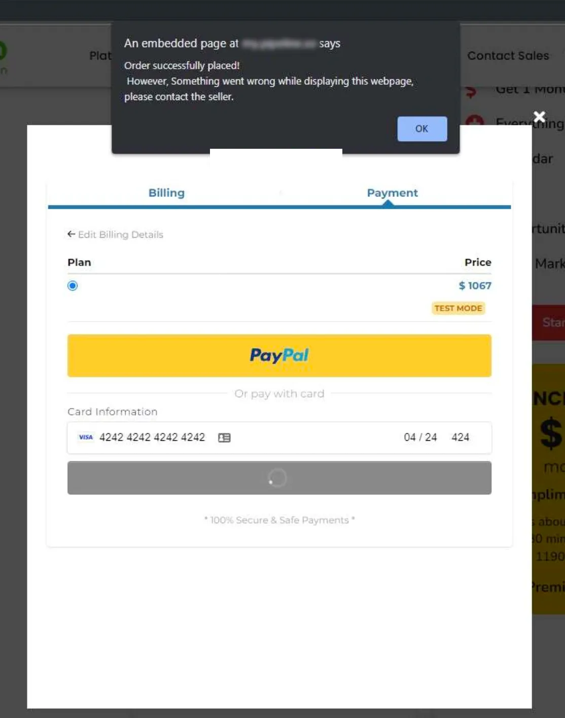Wenn Sie den Fehler erhalten:"Bestellung erfolgreich aufgegeben!Es ist jedoch ein Fehler beim Anzeigen dieser Webseite aufgetreten, bitte kontaktieren Sie den Verkäufer."