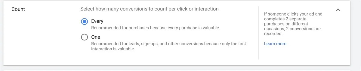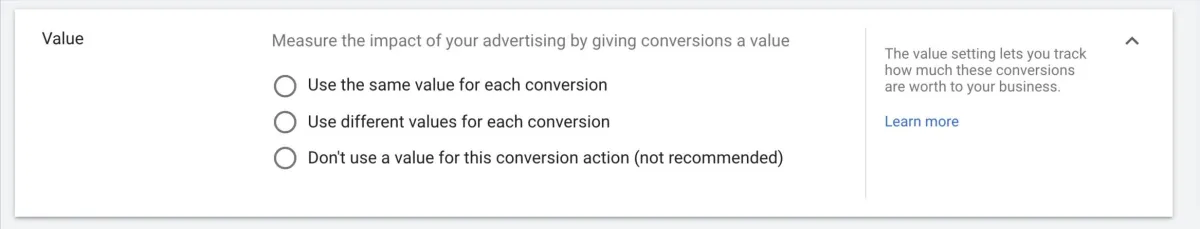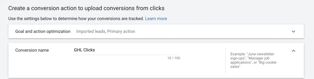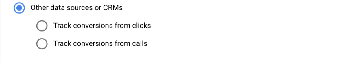 Wenn Sie das Klicken auf einer Seite oder den vom Benutzer initiierten Anruf verfolgen möchten, wählen Sie die Option zur Erfassung der Konversion.