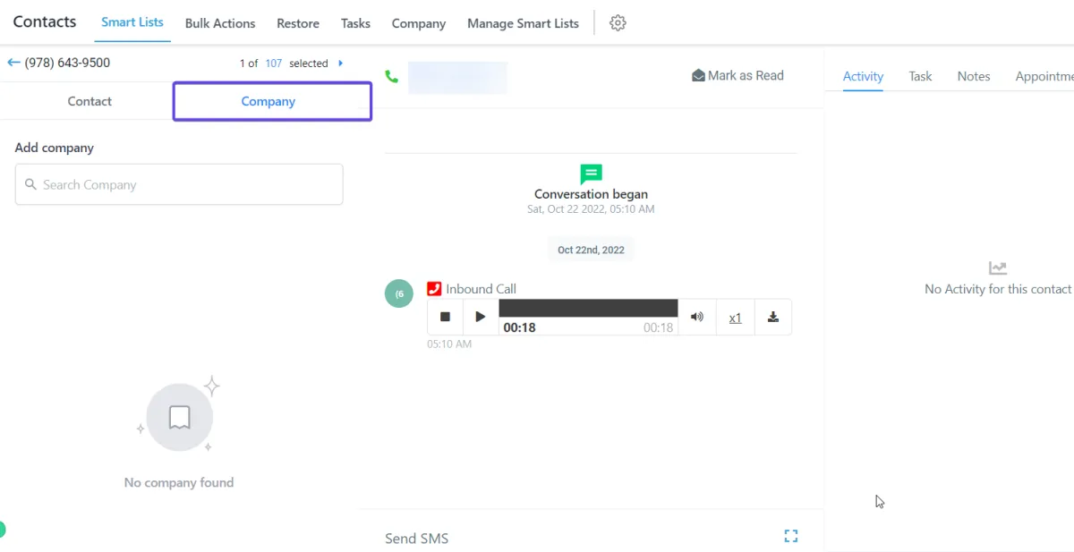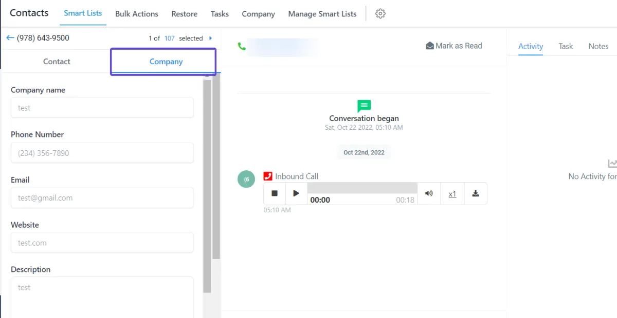 Das Funktionsmerkmal "Company Object" ermöglicht die Erstellung einer neuen Entität namens "Unternehmen" und die Zuordnung von Kontakten zu ihnen. Dies kann auch als Gruppierungs Mechanismus für eine Liste von Kontakten betrachtet werden, wobei eine Liste von Kontakten einem Unternehmen zugeordnet und deren konsolidierte Aktivitäten verfolgt werden können.