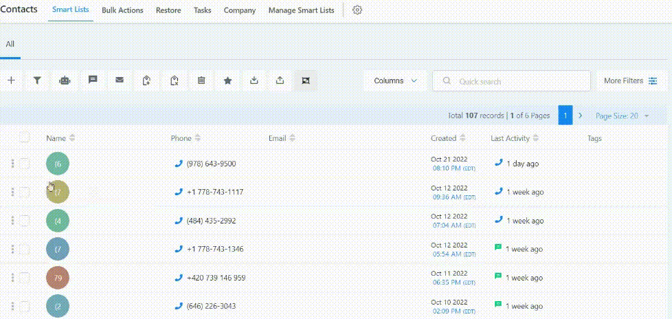 Sie können mehrere Kontakte markieren und dann zwischen ihnen wechseln, um das Hinzufügen von Kontakten zu einem Unternehmen in großen Mengen zu erleichtern: