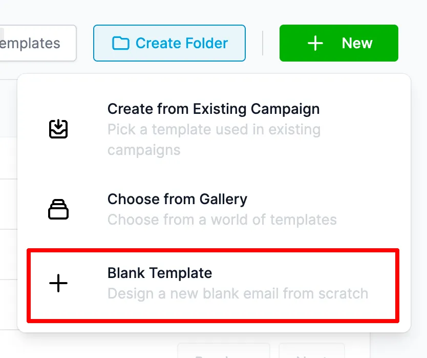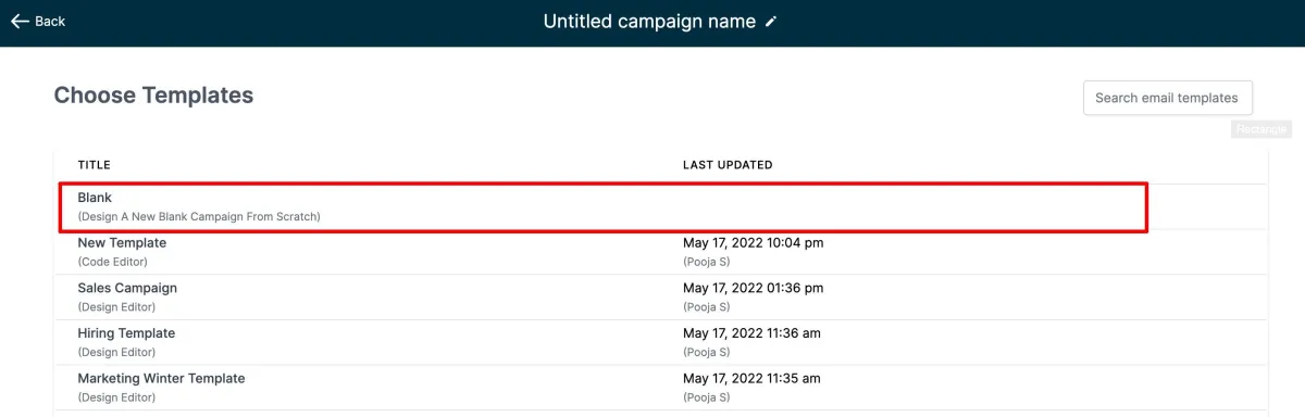 2. Es wird auch einen Bildschirm mit einer Liste aller Vorlagen und leerer Kampagnen geben. Wählen Sie die Option "Leere Kampagne", um fortzufahren.