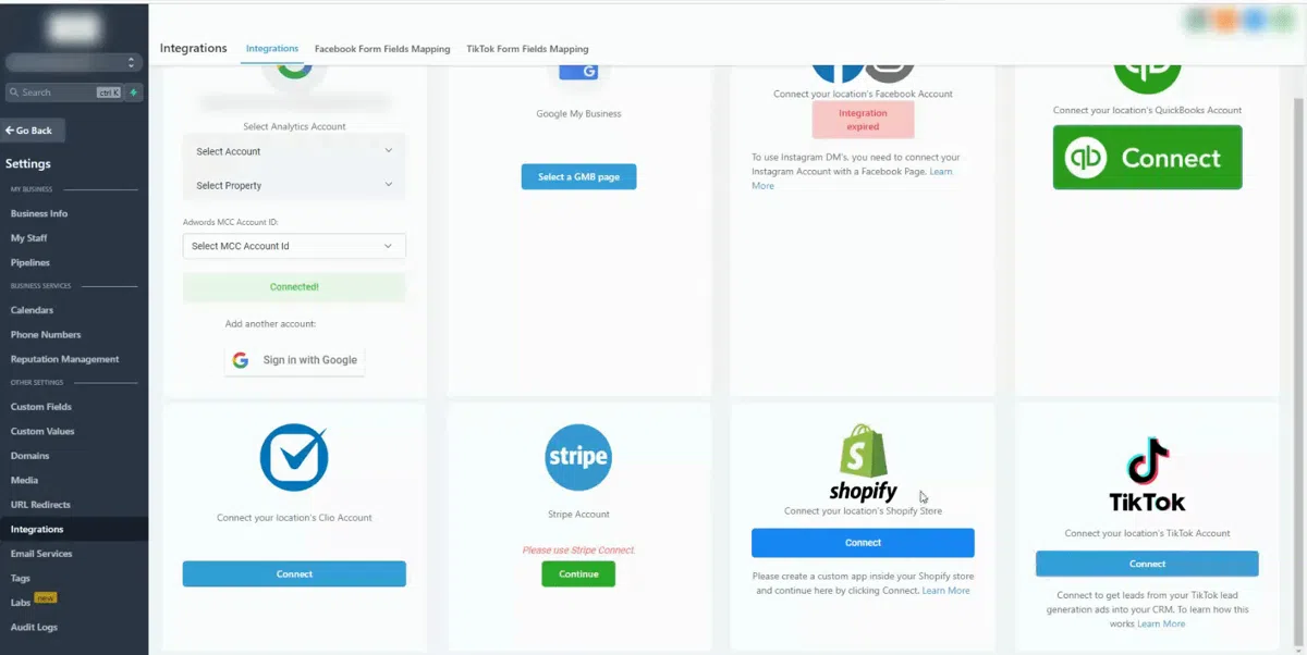 Nur Lead Connector benötigt Berechtigungen, die beim Verbinden der Integration berücksichtigt werden. Benutzerberechtigungen und Zugriff sind kein Problem.