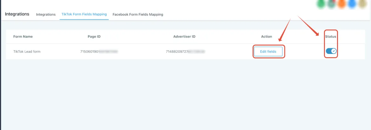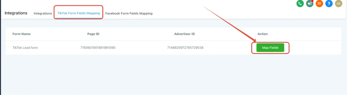 Sobald Ihr TikTok-Business-Account verbunden ist, navigieren Sie bitte zum Tab "TikTok-Formularzuordnung", um alle Seiten/Formulare zu sehen, die Sie im TikTok-Business erstellt haben.