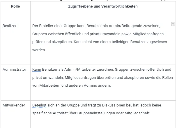 >Zugangskontrolle: Rollen anpassen und steuern, wer die Gruppe sehen und daran teilnehmen kann.