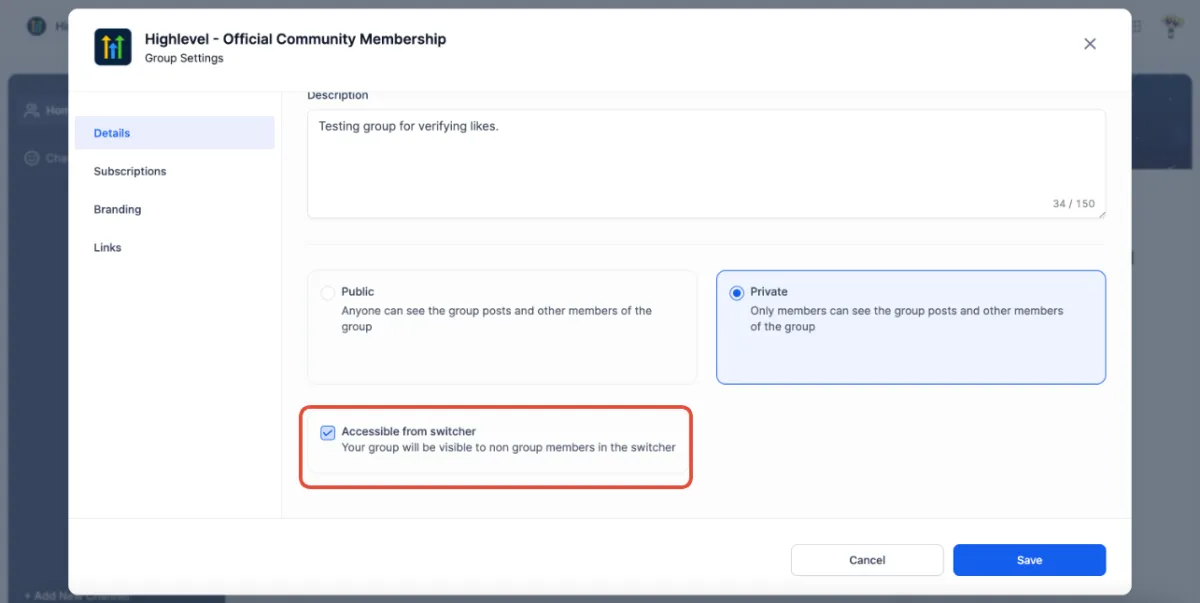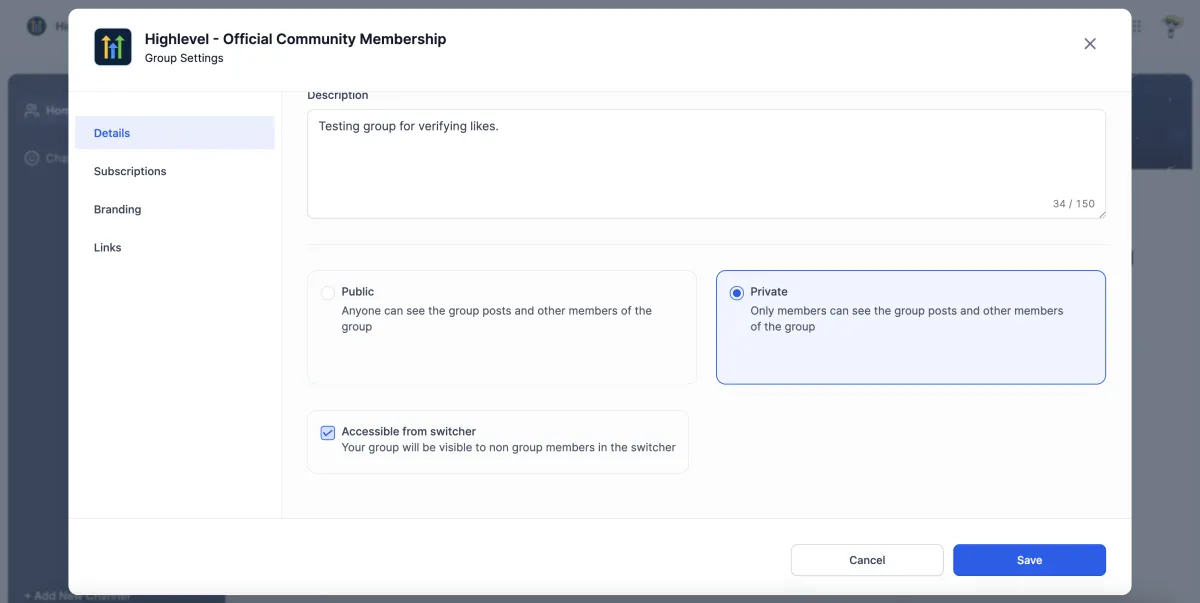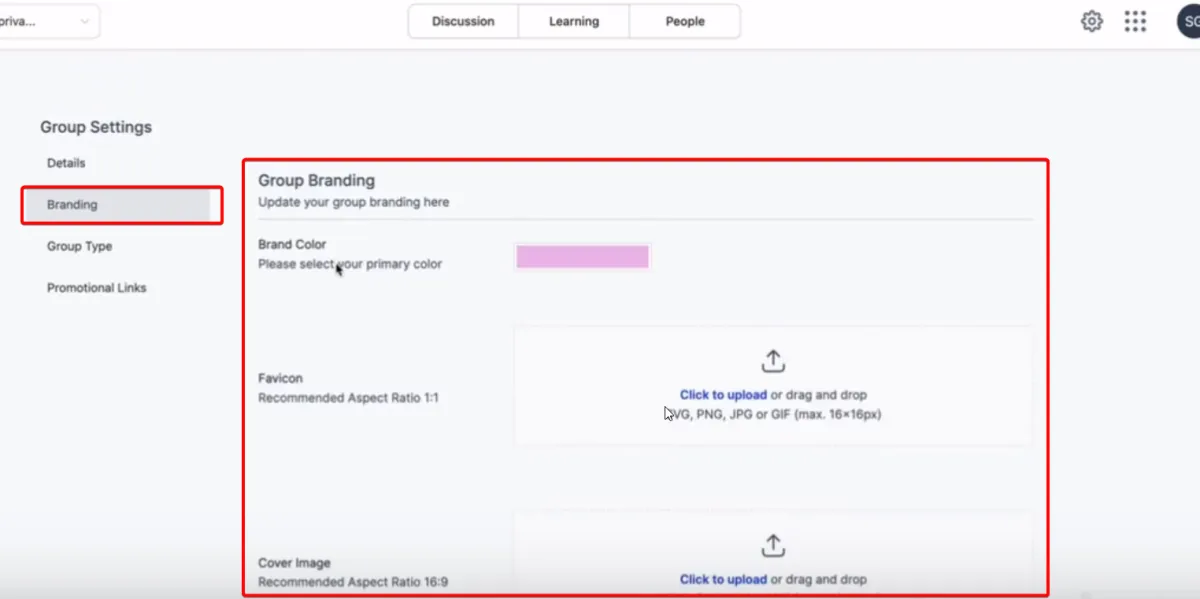 Die oben genannten Funktionen werden durch eine benutzerfreundliche Oberfläche ergänzt, die es Eigentümern und Administratoren ermöglicht, einfach zwischen Gruppentypen zu wechseln, das Branding anzupassen und die Sichtbarkeit für Nicht-Gruppenmitglieder zu steuern.
