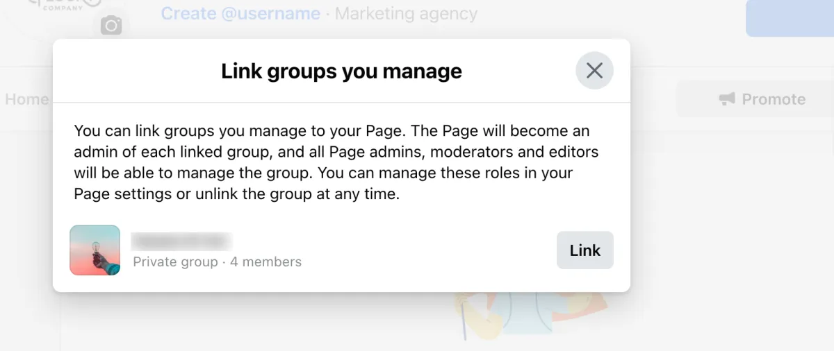 >Klicken Sie neben der Gruppe, die Sie mit Ihrer Seite verknüpfen möchten, auf "Link".