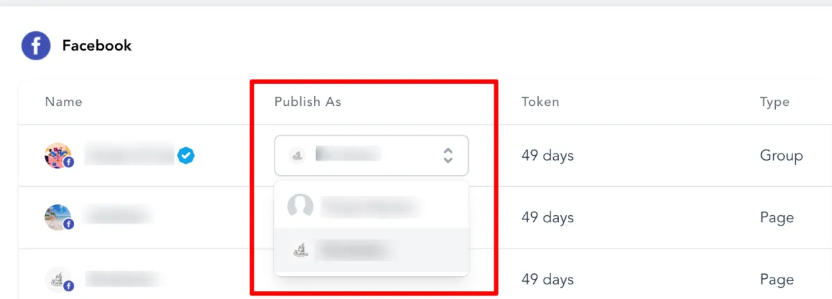 Sobald die Facebook-Gruppe(n) im Social Planner verbunden sind, besteht der nächste Schritt darin, den Veröffentlicher der Facebook-Gruppe auszuwählen.