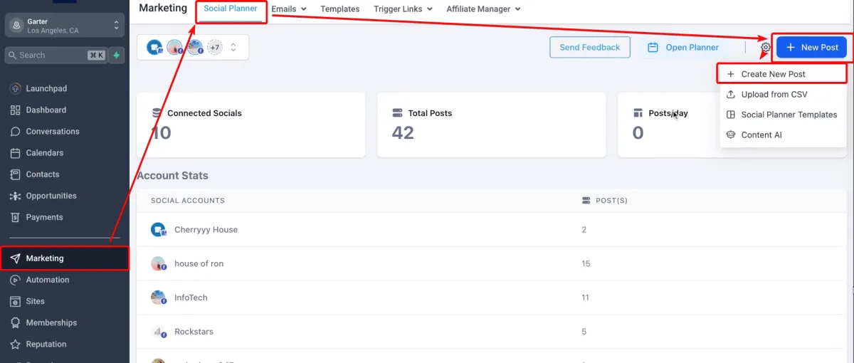 >Gehen Sie zu Marketing > Social Planner.
