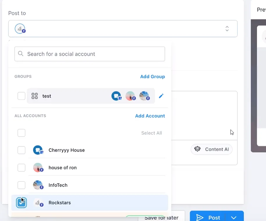 >Erstellen Sie einen neuen Beitrag für die soziale Plattform, für die Sie Inhalte erstellen möchten.