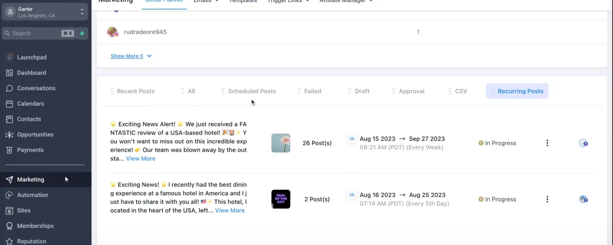 Überwachung und Verwaltung: Die Nutzer können alle ihre wiederkehrenden Beiträge über eine einfache Schnittstelle verfolgen und verwalten und haben so die Kontrolle über ihre Social-Media-Inhalte.