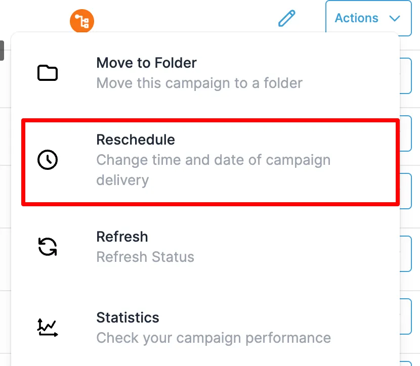 1. Wählen Sie im Dropdown-Menü des Aktionsbuttons die Option Kampagne neu planen.