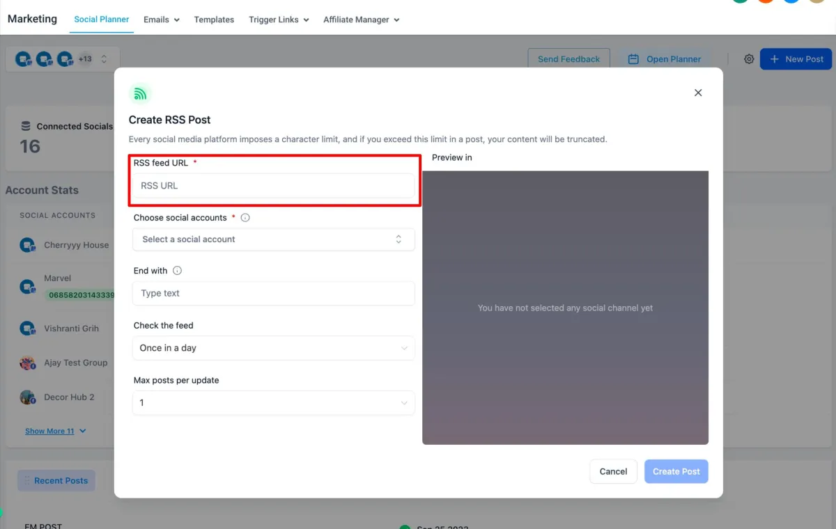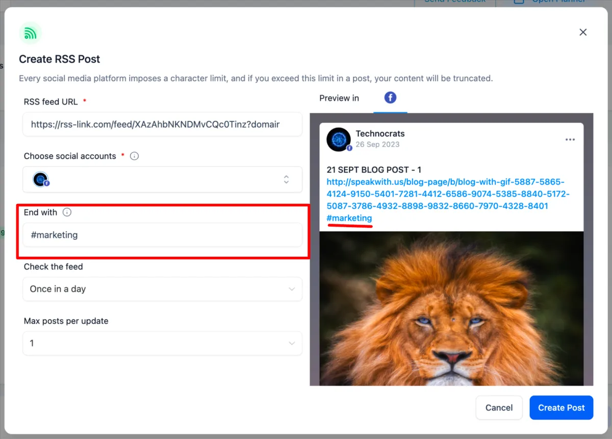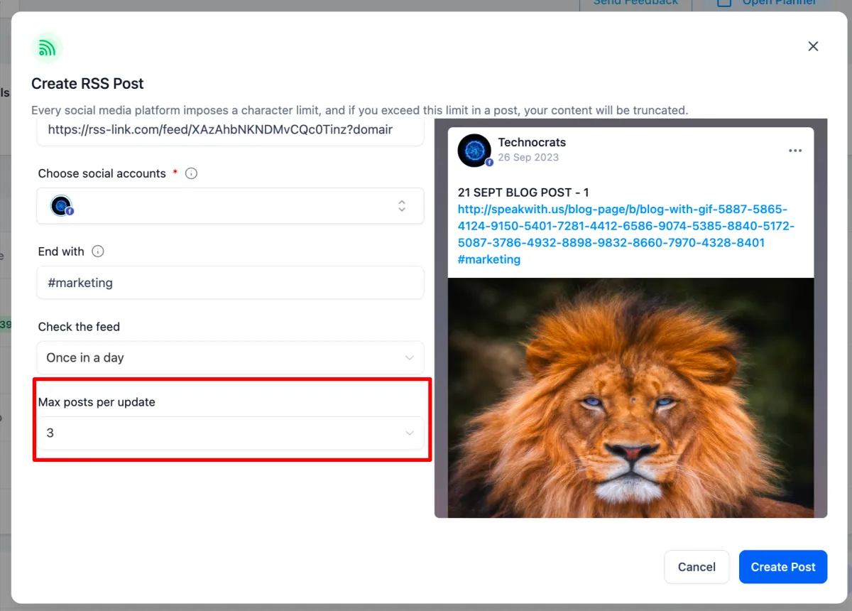 RSS, die Abkürzung für Really Simple Syndication, ist ein Web-Feed-Format, das zur Veröffentlichung häufig aktualisierter Inhalte verwendet wird. Social Planner hat kürzlich die Möglichkeit eingeführt, das automatisierte Teilen mithilfe von RSS-URLs zu erstellen. Sparen Sie Zeit und halten Sie Ihre Feeds auf dem neuesten Stand.