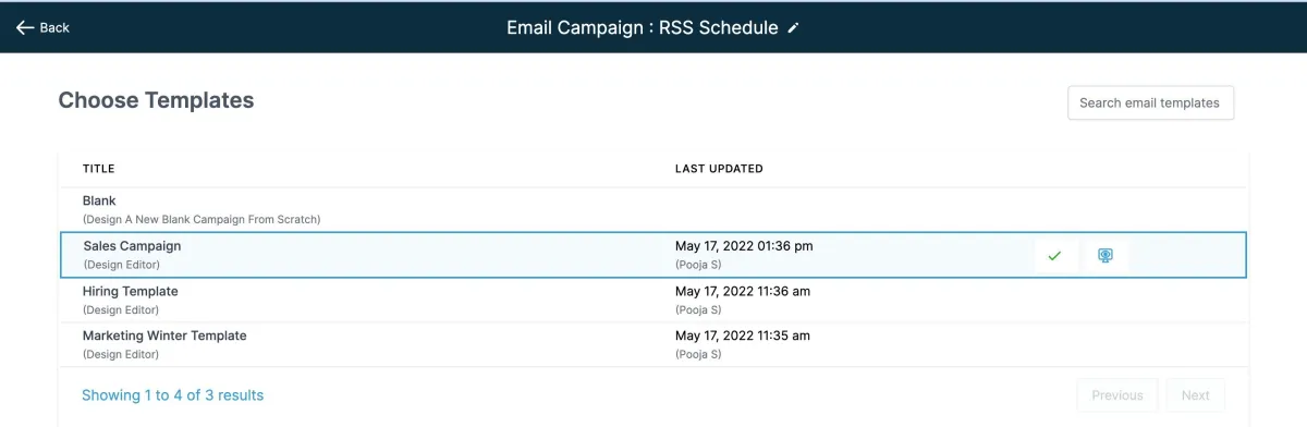 - Um eine E-Mail zu senden, stellen Sie sicher, dass Sie eine E-Mail-Vorlage für den Versand der Kampagne erstellt haben.