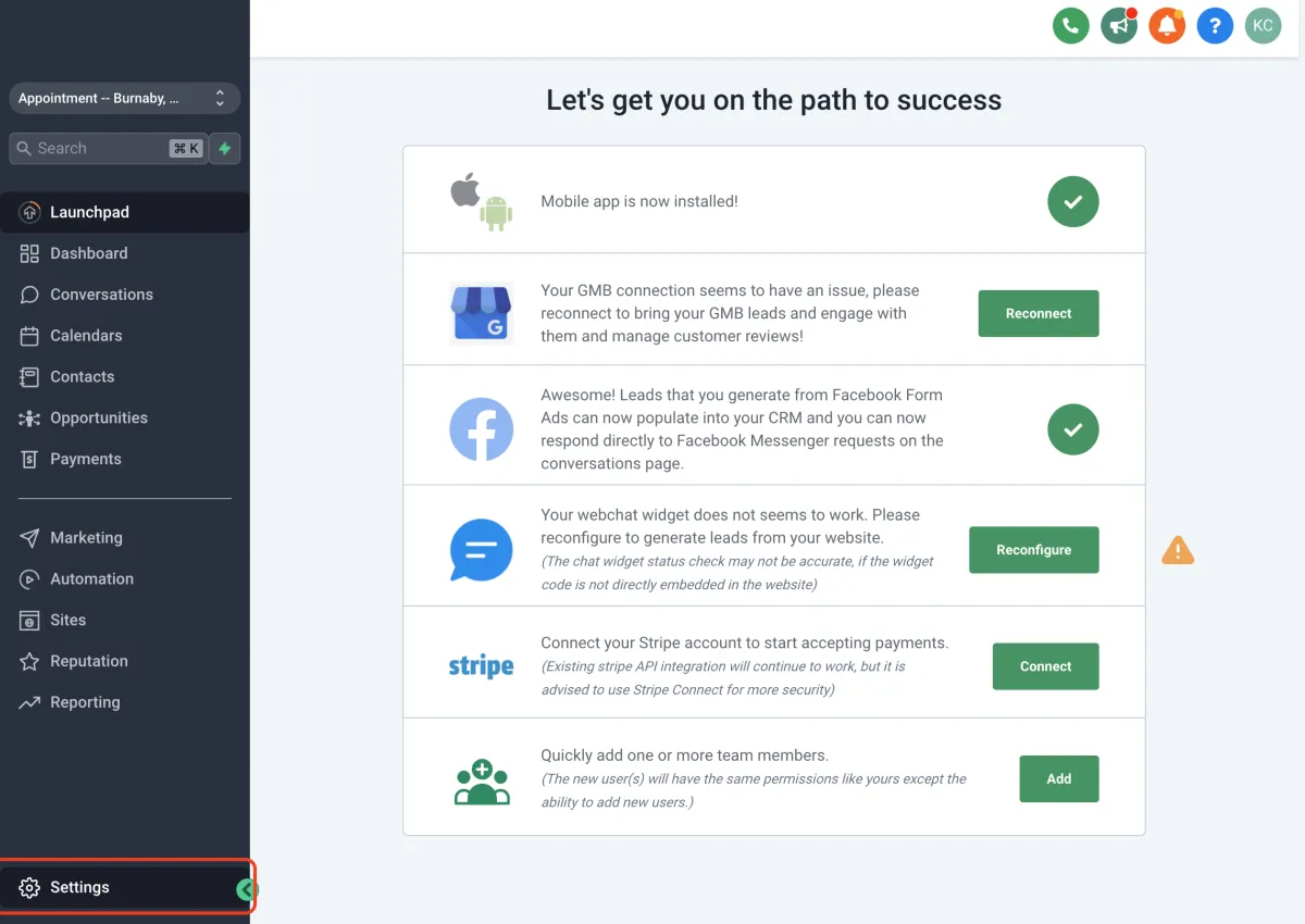 Sobald Sie sich im Funnel/auf der Website befinden, klicken Sie auf die Registerkarte „Einstellungen“ . Fügen Sie nun den kopierten Normal-Snippet unten in Ihr Body-Tracking-Code -Feld ein.