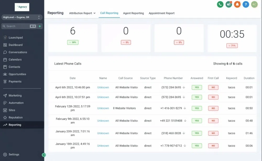 Ihre Website-Besucher suchen nach den Schlüsselwörtern, landen dann auf Ihrer Website und rufen die Trackingnummer an. Wir können die Quelle und das Schlüsselwort auf der Registerkarte „Anrufbericht“ zuordnen.
