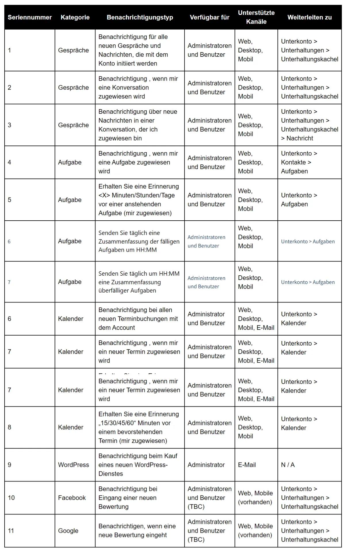 Mit den Benachrichtigungseinstellungen können Benutzer auswählen, wie sie über wichtige Aktionen – wie neue Nachrichten, Aufgaben, Termine oder Bewertungen – über verschiedene Kommunikationskanäle benachrichtigt werden möchten. Ziel ist es, unnötige Störungen zu reduzieren und es Benutzern zu ermöglichen, sich auf das für sie Relevante zu konzentrieren.