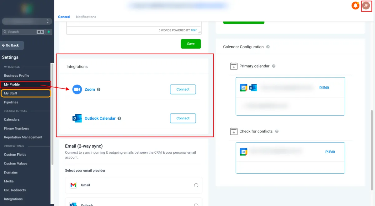 Bitte beachten Sie : Sie müssen als Benutzer angemeldet sein, um die Integrationsoptionen für Profileinstellungen nutzen zu können. Sollten Sie die Profileinstellungsoption in den Einstellungen auf Unterkontoebene nicht finden , müssen Sie die Rolle des Benutzers in den Teameinstellungen auf Agenturebene bearbeiten , um den Benutzer den jeweiligen Standorten zuzuweisen.