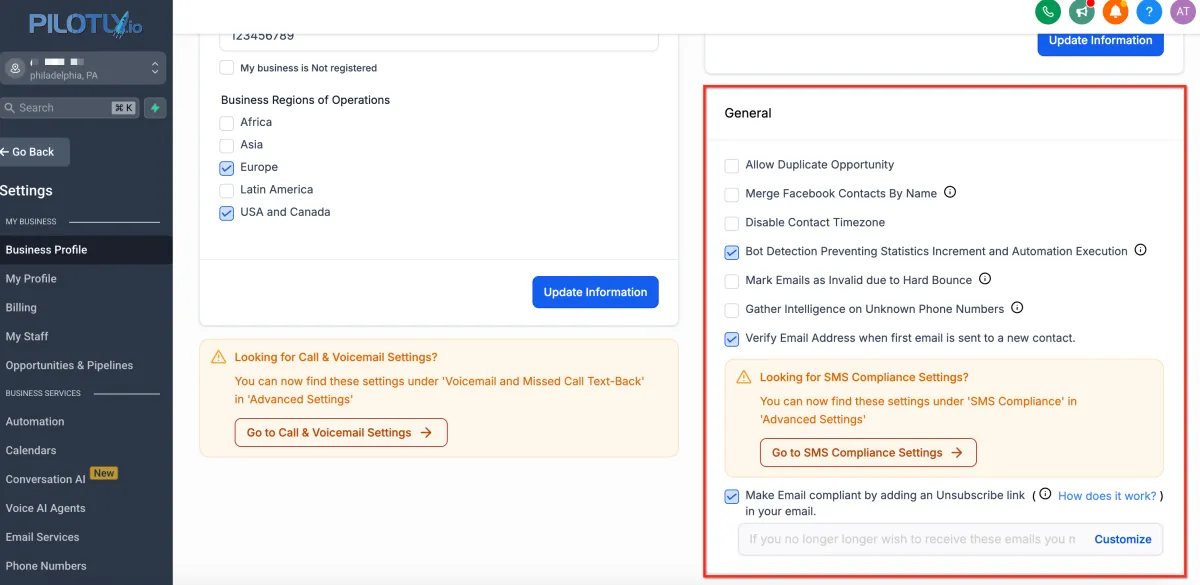 Über einen Abmeldelink können Ihre Kontakte den Erhalt zukünftiger E-Mails Ihres Unternehmens ablehnen. Dies ist eine gesetzliche Anforderung gemäß E-Mail-Compliance-Gesetzen wie dem CAN-SPAM Act und der DSGVO. Das LC-E-Mail-System von Pilotly.io unterstützt Sie bei der Einhaltung dieser Vorschriften, indem es automatisch einen Abmeldelink in Ihre E-Mail-Fußzeilen einfügt, sofern Sie ihn nicht deaktivieren.
