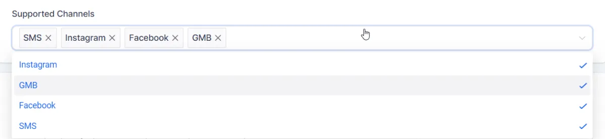 Der Abschnitt "Unterstützte Kanäle" ermöglicht es Ihnen, die Plattformen auszuwählen, auf denen Conversation AI aktiv sein wird. Folgende Kanäle werden derzeit unterstützt: