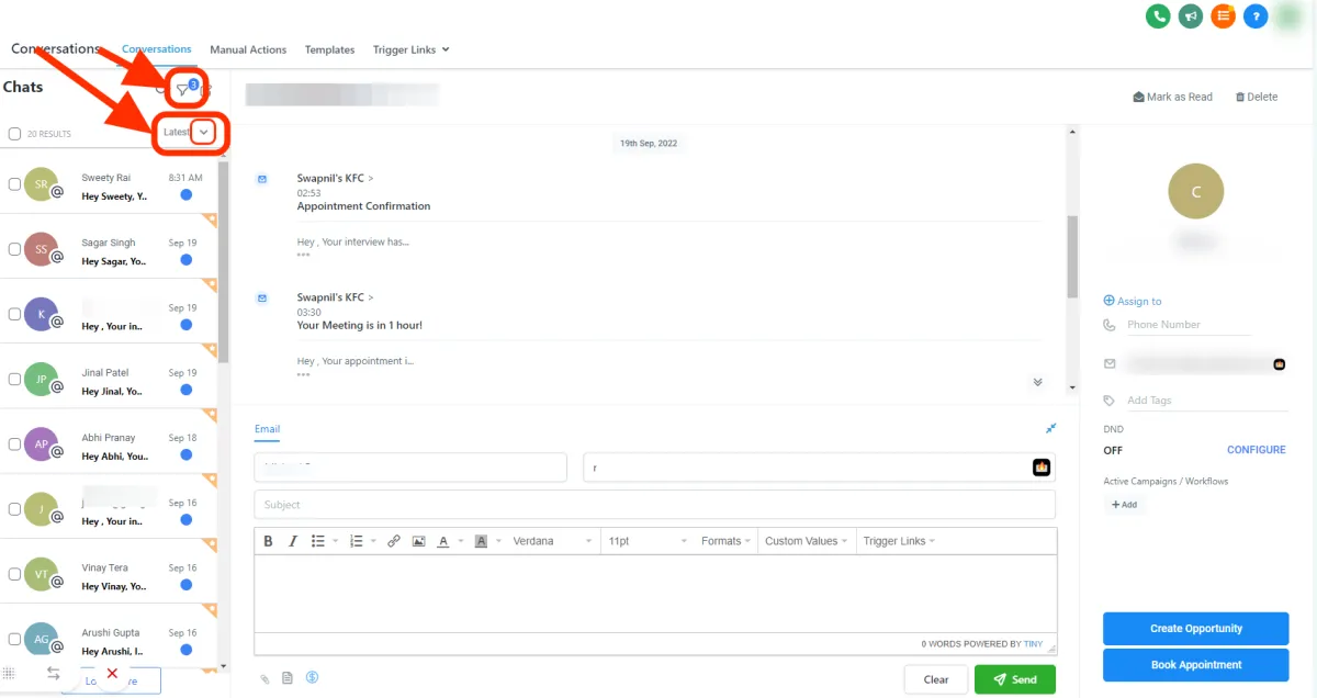 Sie können Konversationen basierend auf ein paar Filtern filtern, sodass Sie Ihre Konversationsansicht auf etwas verringern können, das Sie jetzt benötigen.