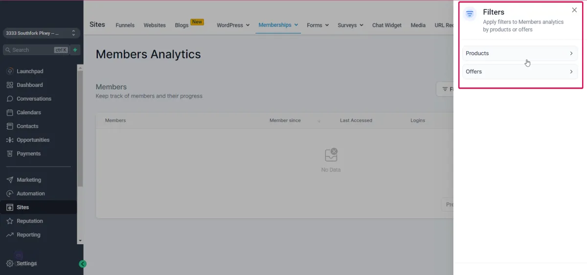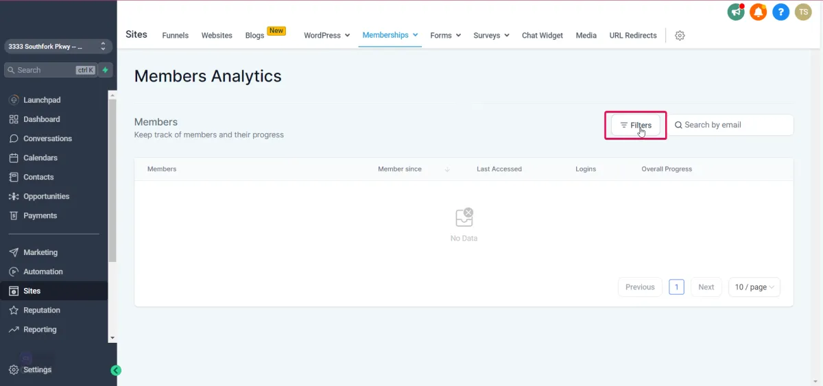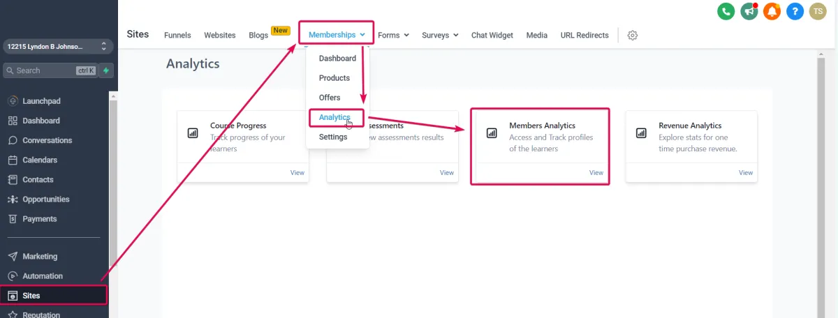1. Zugriff auf die Mitgliederanalytik: Navigieren Sie im Bereich Websites zu Mitgliedschaft > Analytik > Mitgliederanalytik.