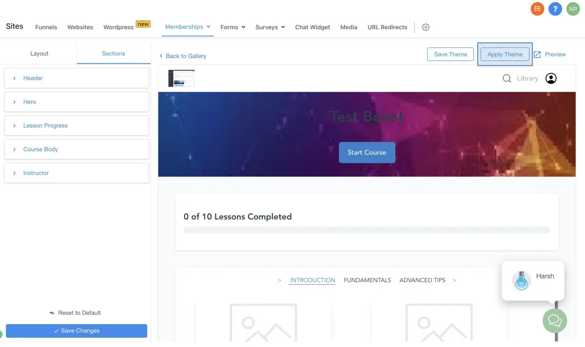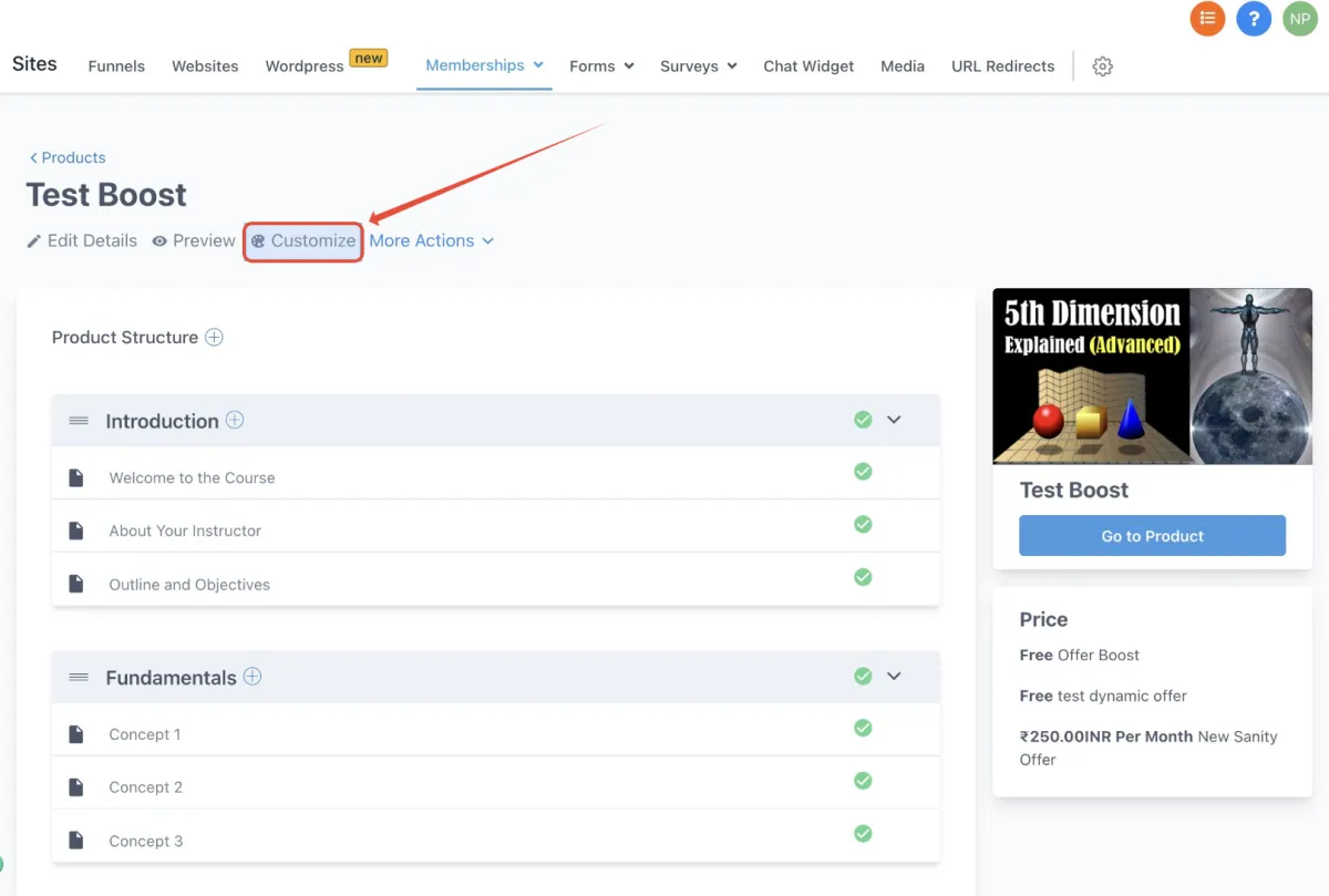 3. InstructorNavigation:Sites->Mitgliedschaft->Produkte->Anpassen->Galerie>Anpassen>Abschnitte-> Instructor