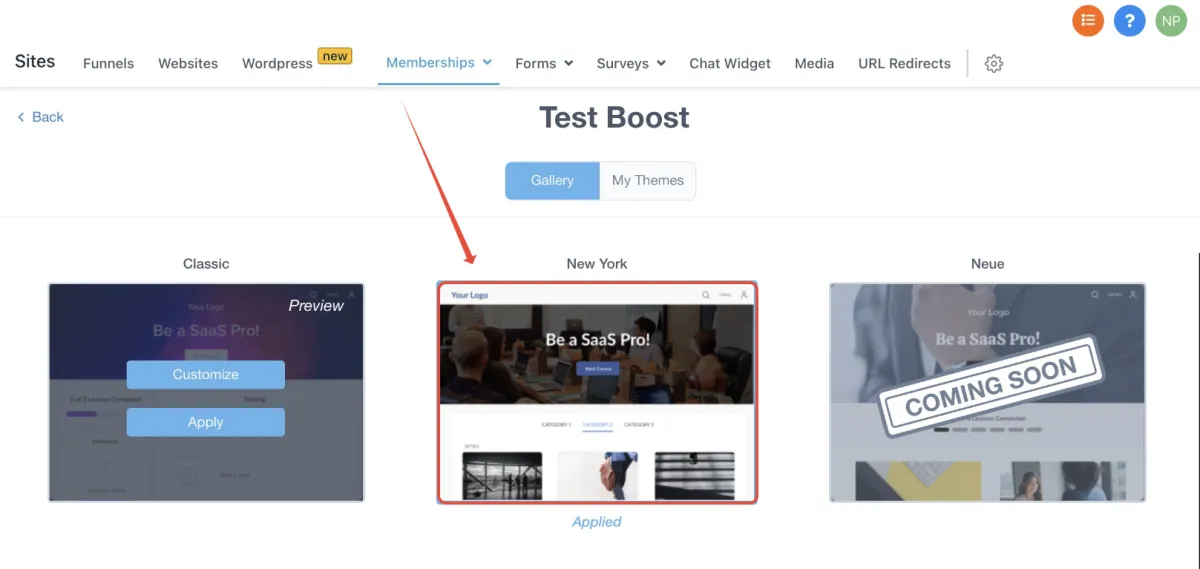 Wenn Sie ein Produkt erstellen, wird standardmäßig das klassische Thema ausgewählt, aber wir bieten verschiedene Systemthemen zur Auswahl an, damit Ihr digitales Produkt am besten zu Ihrer persönlichen Marke passt! Denken Sie daran, dass jedes Thema ein anderes Aussehen, Gefühl und Gesamterlebnis für Ihre Mitglieder bietet