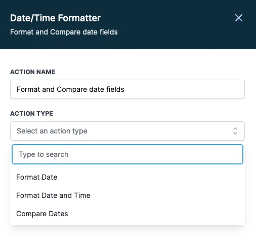 Die Aktion "Datums-/Zeitformatierer" ist ein vielseitiges Werkzeug, das Benutzern ermöglicht, Datums- oder Datums- und Zeitstrukturen neu zu formatieren und Daten innerhalb von Workflows zu vergleichen. Diese Funktion ermöglicht die einfache Umwandlung von Datumsformaten zur Kompatibilität mit verschiedenen Anwendungen, Datenbankspeicherung oder Kommunikationskanälen wie E-Mail, SMS oder Slack. Sie erleichtert auch den Vergleich von Daten, um die Differenz in Tagen zu berechnen, was die Berechnungen und Entscheidungsfindung im Zusammenhang mit Daten vereinfacht.