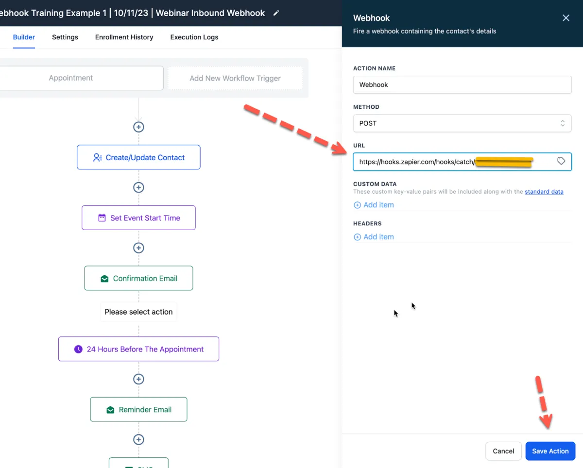 3. Erstellen Sie in der externen Anwendung einen Webhook-Aktionsschritt