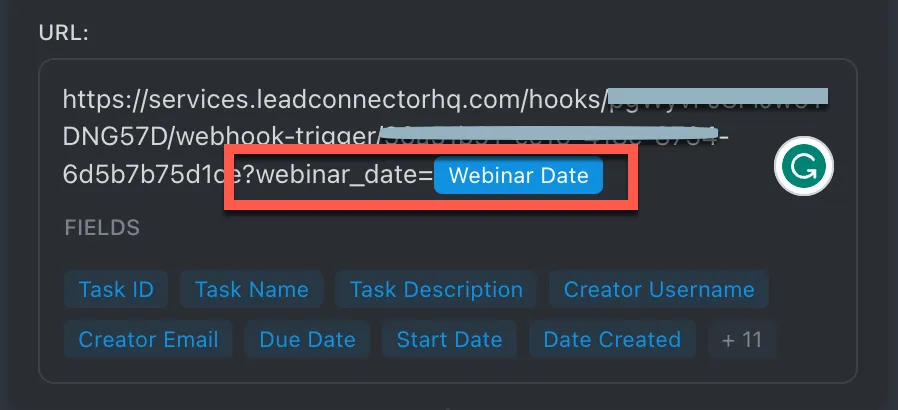 Dazu müssen Sie lediglich einen Abfrageschlüssel und dann den benutzerdefinierten Wert zur Webhook-URL hinzufügen.