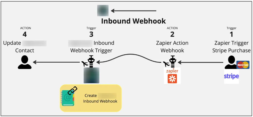 In diesem Szenario werden Sie den Pilotly-Workflow-Auslöser "Inbound Webhook" verwenden, um die Informationen von Stripe abzufangen. Um es einfacher zu machen, empfehlen wir Ihnen, Zapier oder eine andere Automatisierungssoftware zu verwenden, um den Trigger auszulösen, wenn der Kauf in Stripe getätigt wird (wenn Sie kein Pilotly-Bestellformular oder -Produkt verwenden). Wenn der Kauf getätigt wird, wird ein Payload mit allen Informationen, die Sie in Pilotly benötigen, zusammengestellt. Pilotly fängt die Informationen ab und empfängt sie, die für die Ausführung Ihrer spezifischen Aufgaben verwendet werden. In diesem Fall geht es um die Vermarktung an Ihre Käufer, die dieses spezielle Produkt gekauft haben.