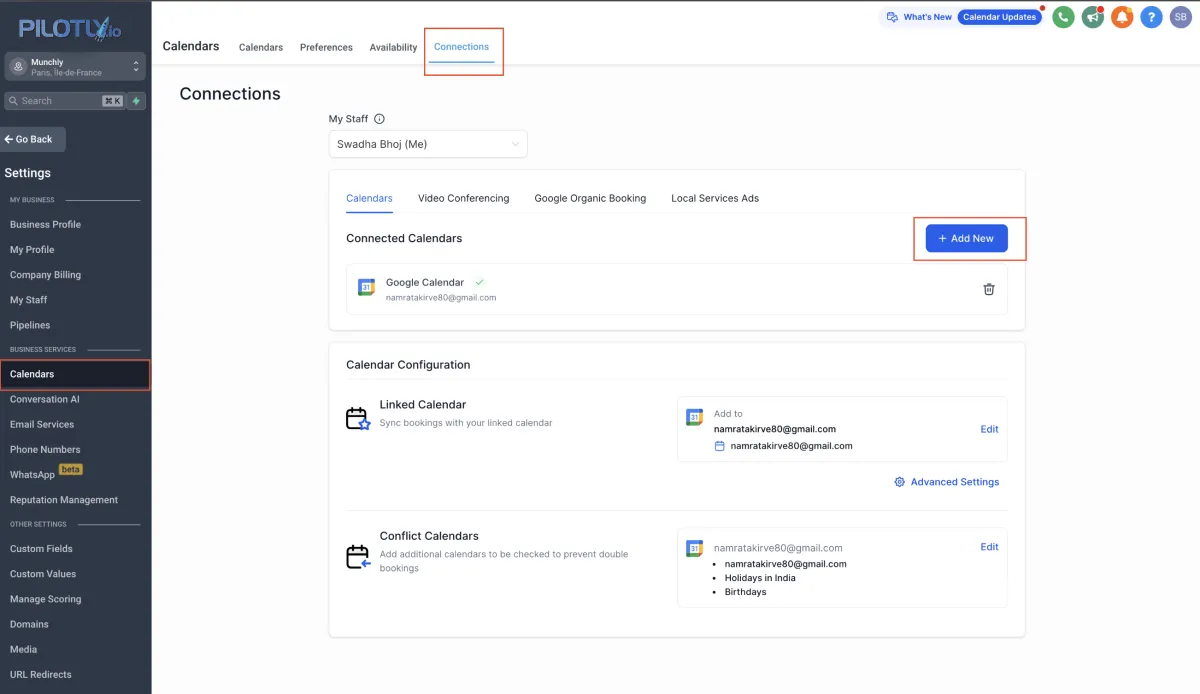 Dies gewährleistet eine genaue Verfügbarkeitsanzeige und vermeidet Doppelbuchungen. Sie können mehrere Kalender hinzufügen, die überprüft werden sollen, um Doppelbuchungen zu verhindern.