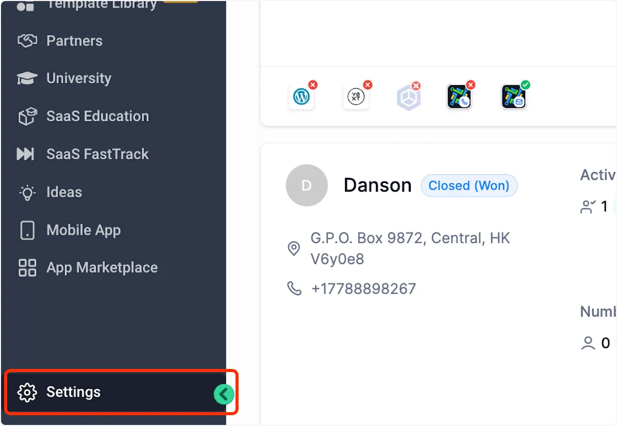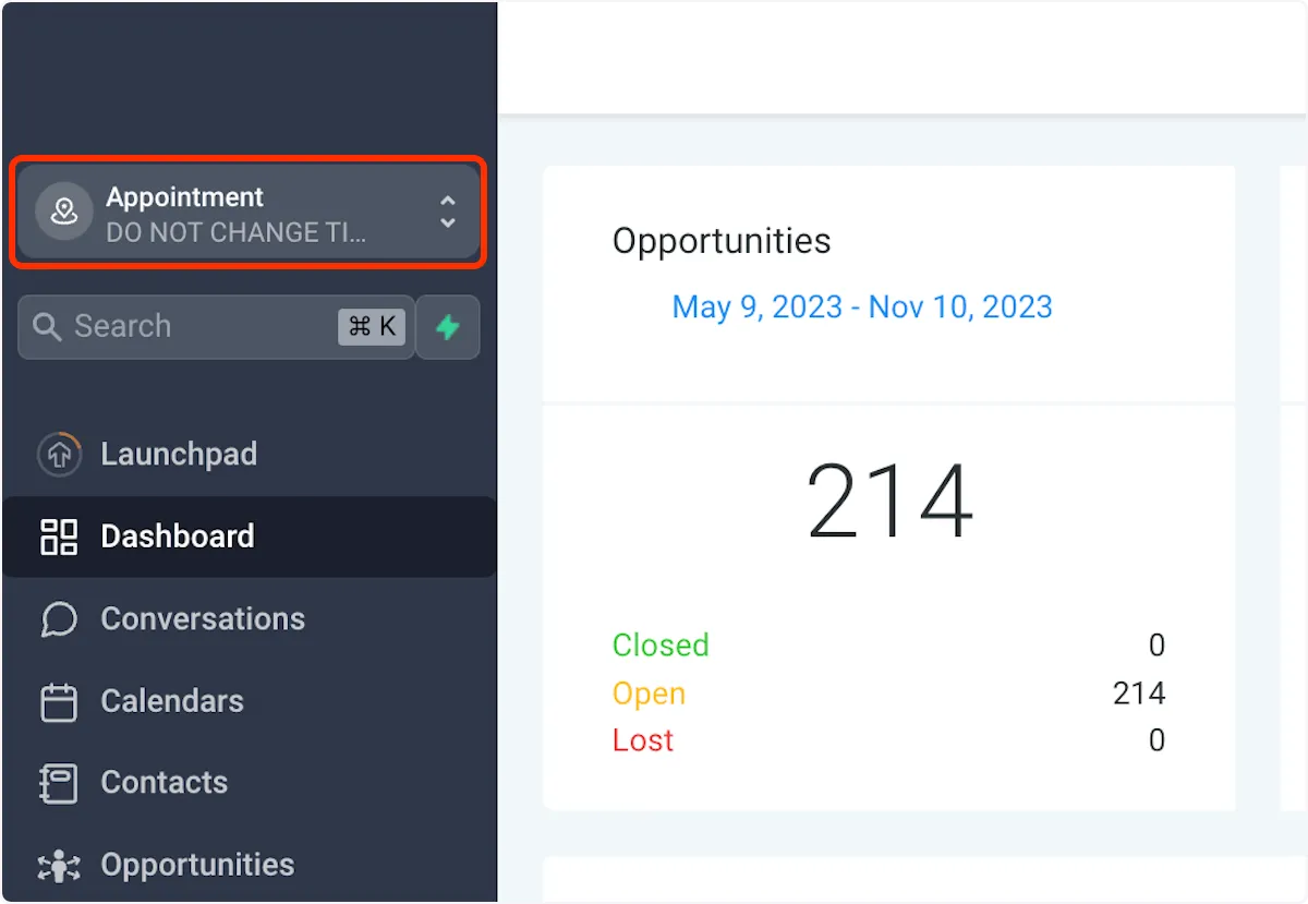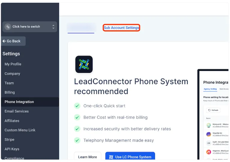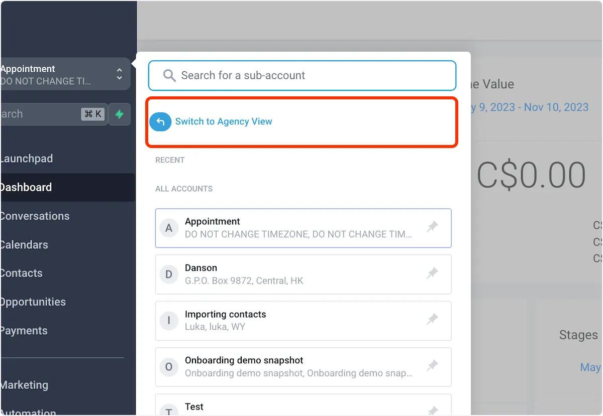 1. Klicken Sie auf den Namen des Unterkontos oben links