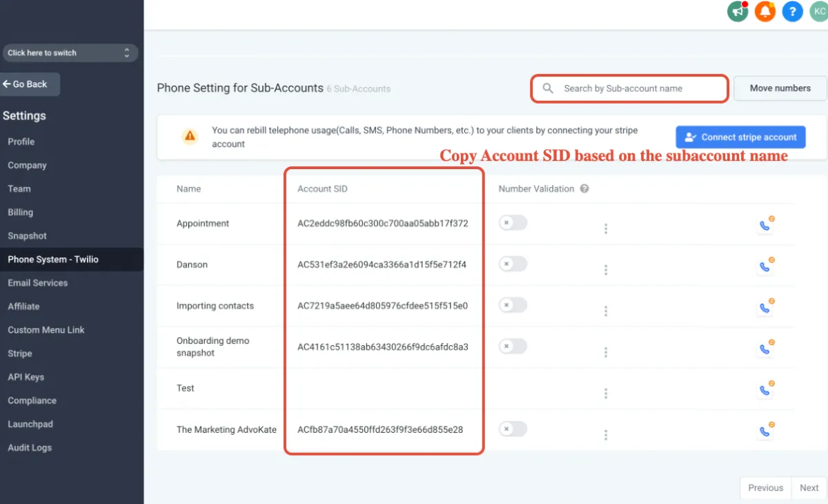 Fügen Sie hier die Account SID ein und klicken Sie darauf:
