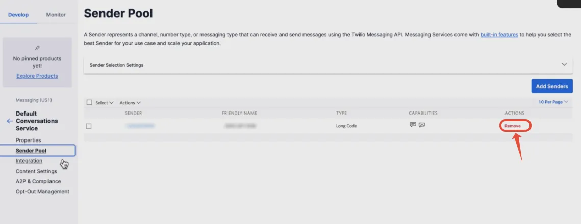 Überprüfen, ob die Twilio-Nummer ein Symbol † daneben hat† Kann nur SMS an inländische Nummern senden/empfangen