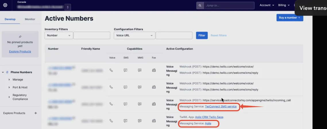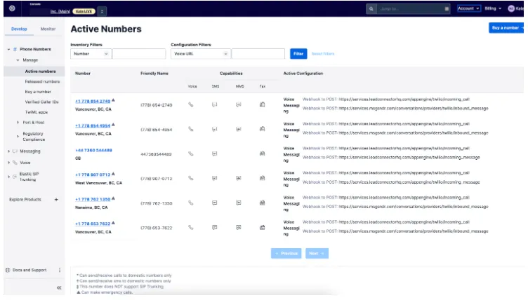 Versuchen Sie, die Twilio-Nummer zurückzusetzen, wenn Sie NICHT auf dem Lead Connector-Telefonsystem sind.Wenn das Zurücksetzen der Twilio-Nummer nicht funktioniert, wenn eingehende SMS nicht in Pilotly.io eintreffen