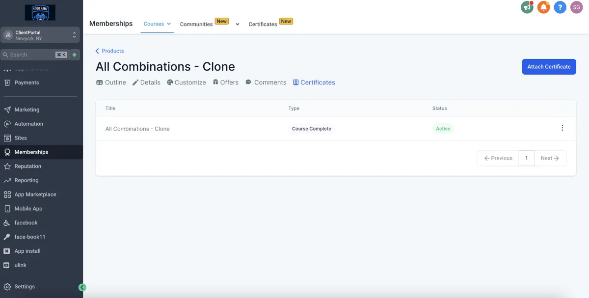 Gehen Sie zu den Seiten > Mitgliedschaften > Zertifikate > Ausgestellte Zertifikate > Klicken Sie auf die drei Punkte und dann auf Zugriff widerrufen für den spezifischen Lernenden. Sobald der Zugriff widerrufen wurde, kann der Lernende auf die zuvor gesendeten Zertifikate nicht mehr zugreifen.