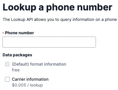 Alle Nummernvalidierungen, unabhängig vom Land, werden mit 0,005 $ pro Validierung berechnet.