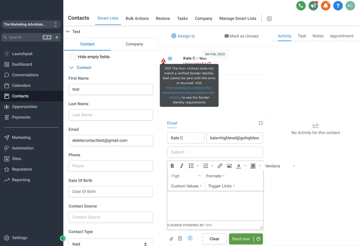Für den in der Konversation angezeigten Fehler rufen wir den Fehler vom SMTP-Anbieter ab und zeigen ihn an. Wenn Sie bereits über die SMTP-integrierte E-Mail senden, öffnen Sie bitte ein Support-Ticket beim SMTP-Anbieter, damit dieser den Zustellstatus der E-Mail mitteilen kann.