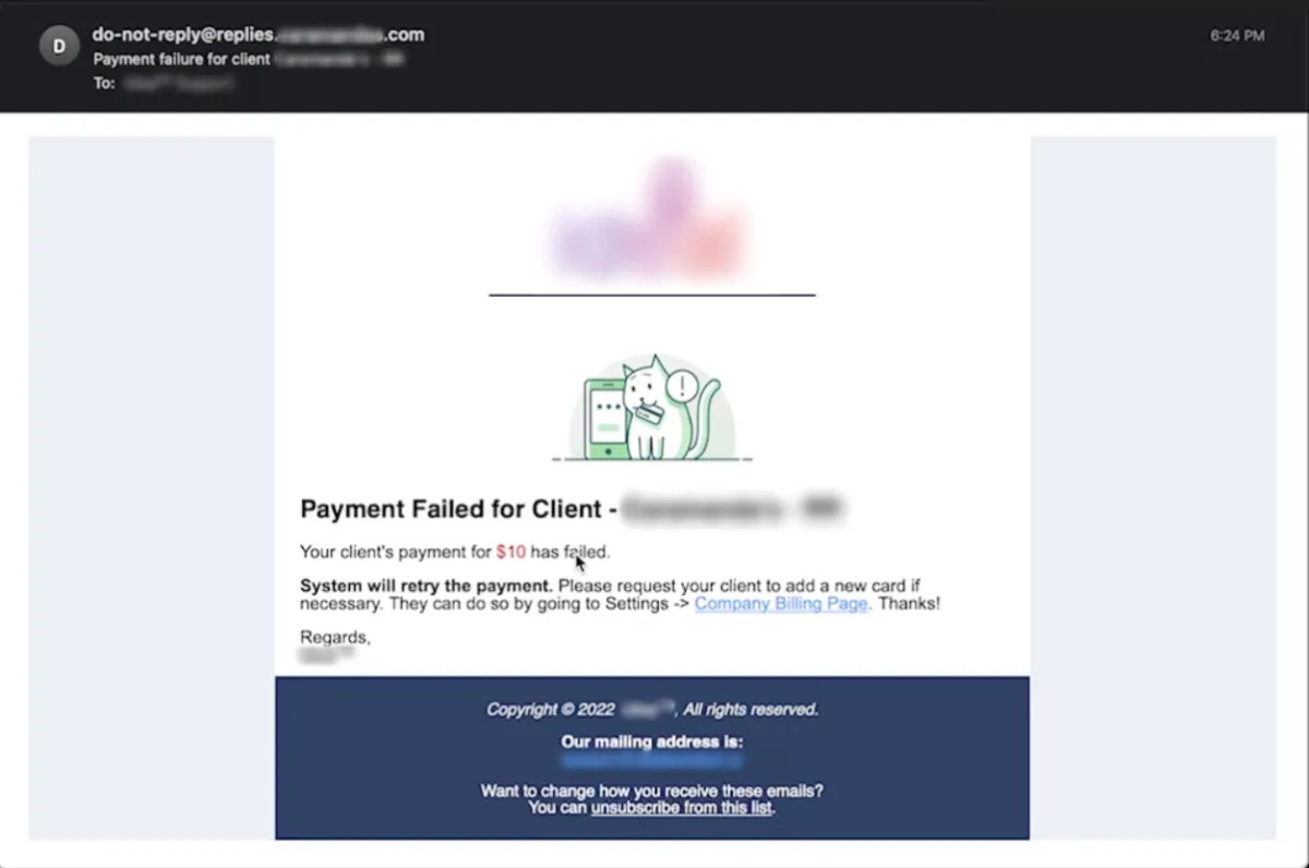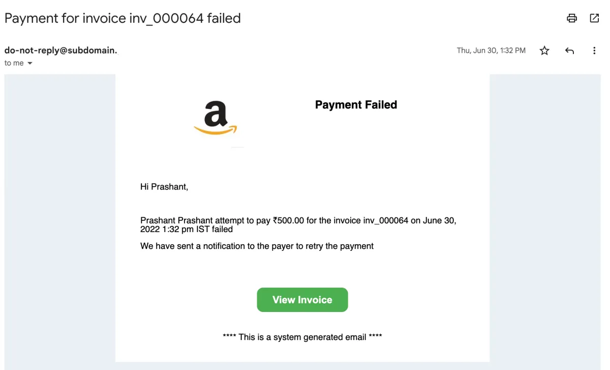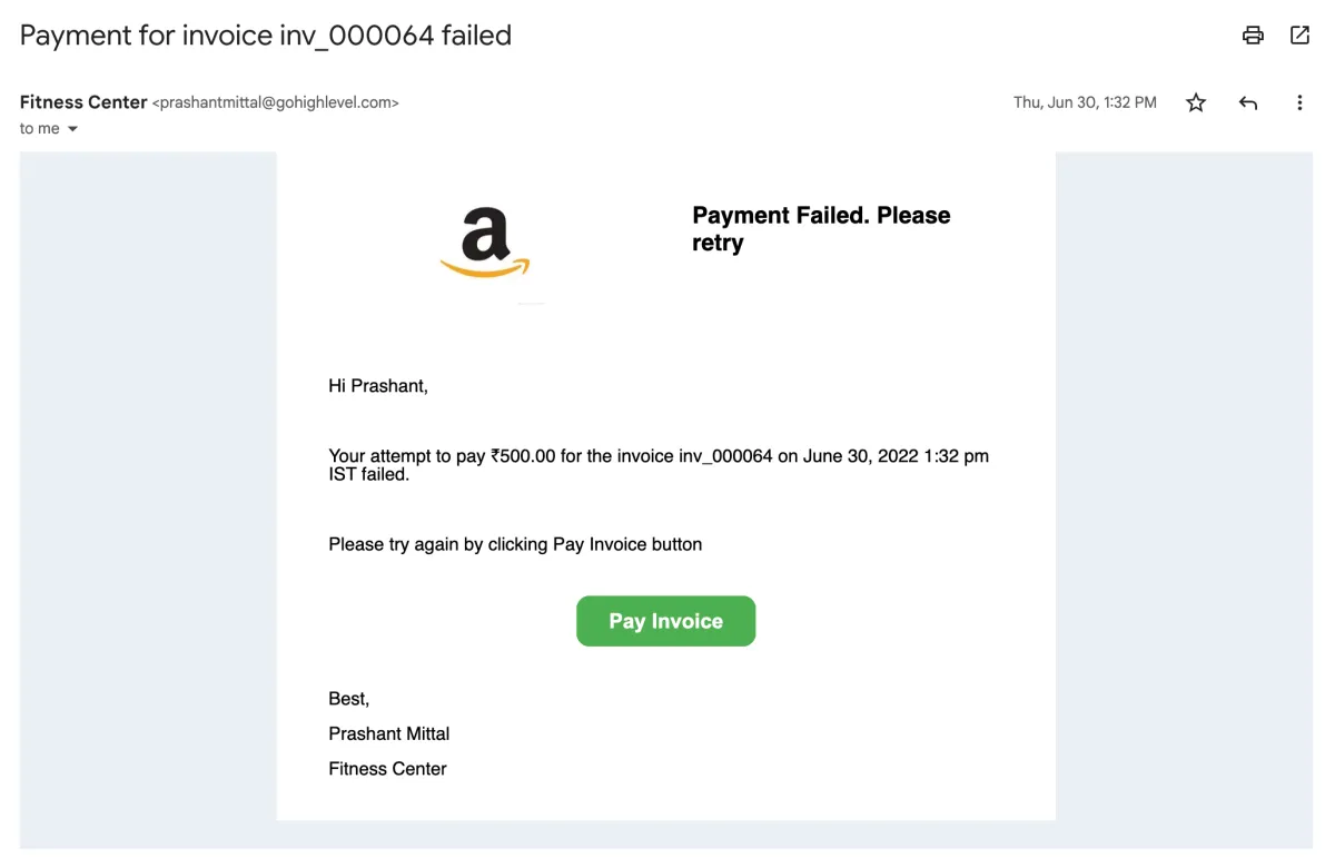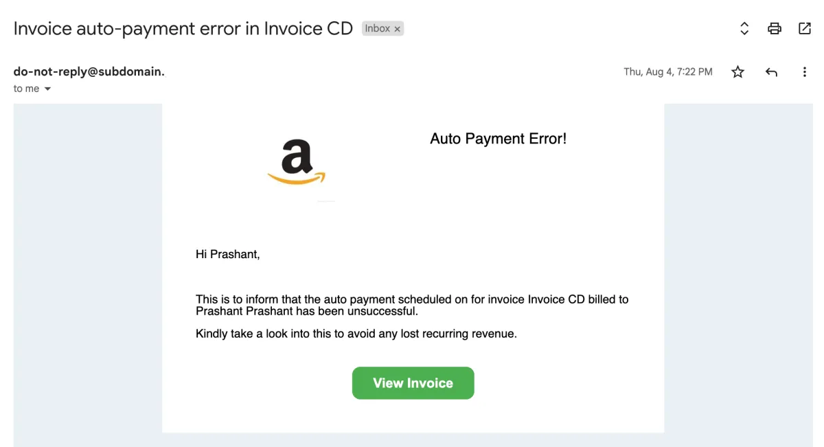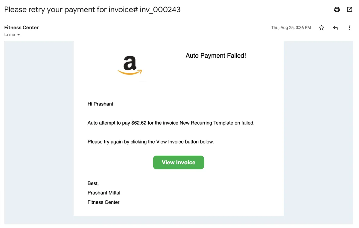 Autozahlung fehlgeschlagen für eine wiederkehrende Vorlage.