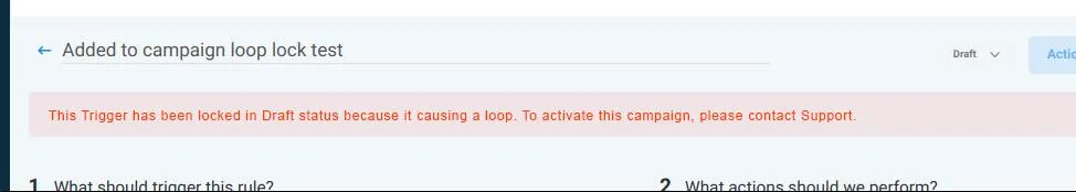 Wenn Sie einen Schleifenfehler erhalten, kontaktieren Sie bitte den Support, damit wir den Auslöser gemeinsam überprüfen, das Problem beheben und den Auslöser freischalten können.