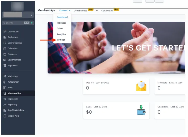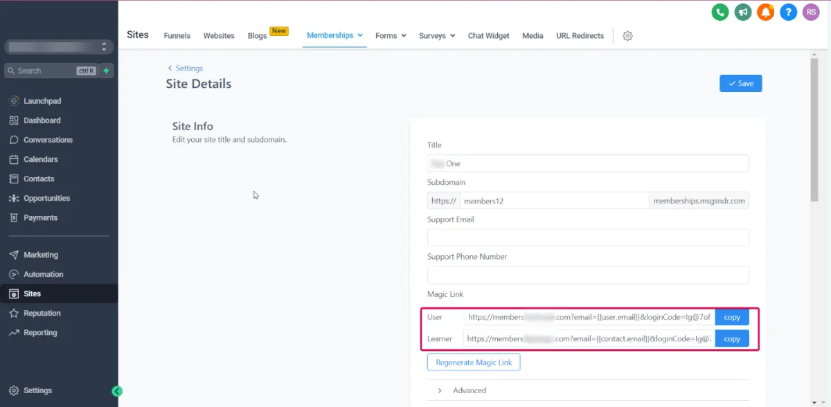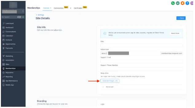 Um Magic Links zu erstellen, gehen Sie zu Mitgliedschaften > Kurse > Einstellungen