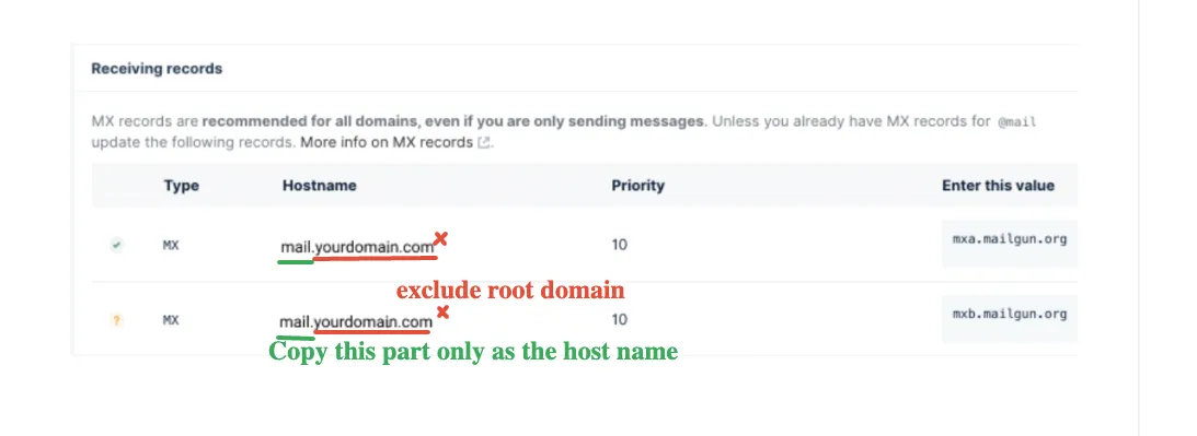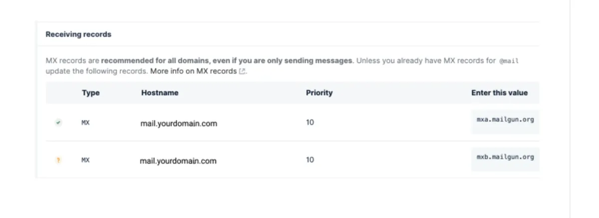 füge die folgenden Daten ein: mxb.mailgun.org