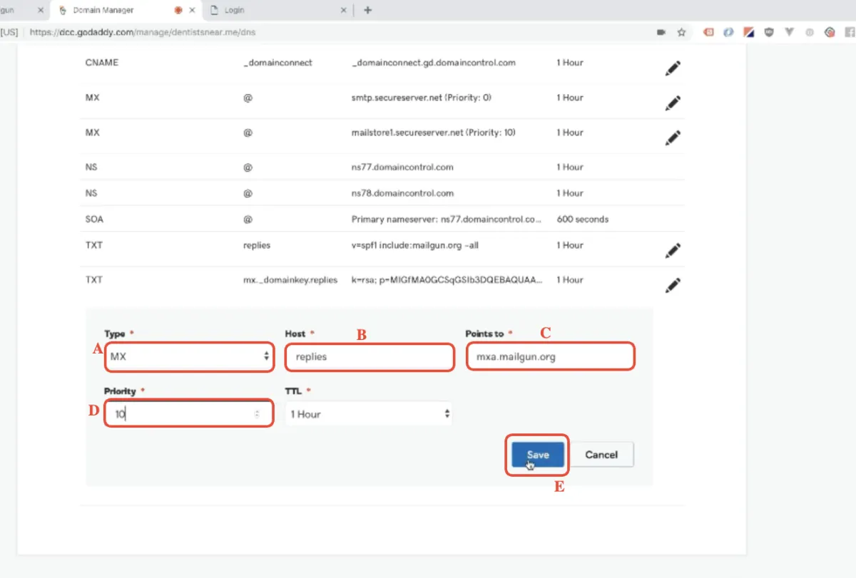 Mailgun Einrichtung - GoDaddy Domain Einrichtung