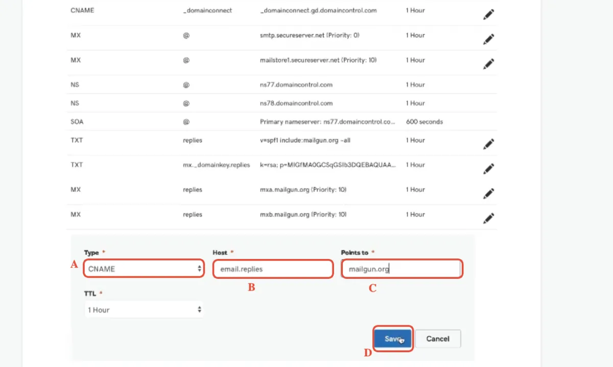 Schritt-für-Schritt Mailgun Einrichtung - GoDaddy Domain Einrichtung